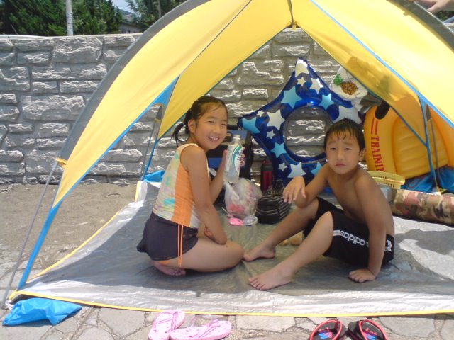 朝一番で矢切で滑ってから、家族で海水浴へ行きました。